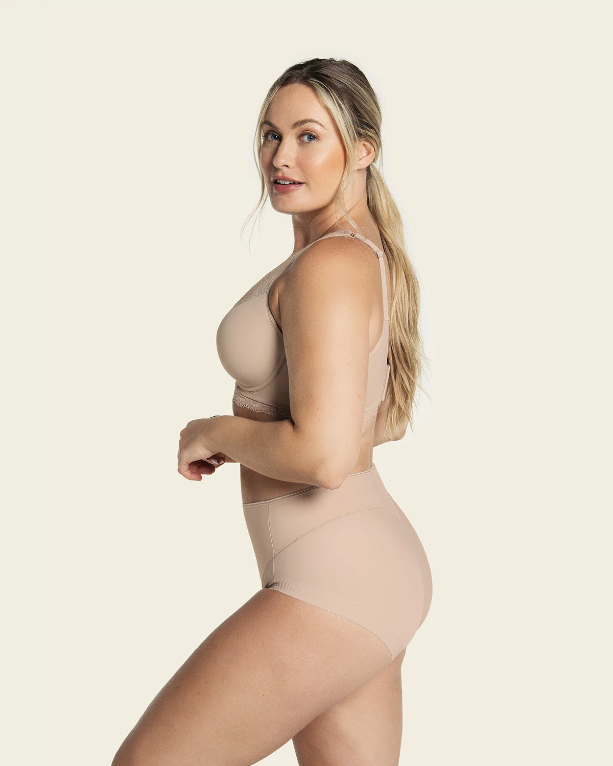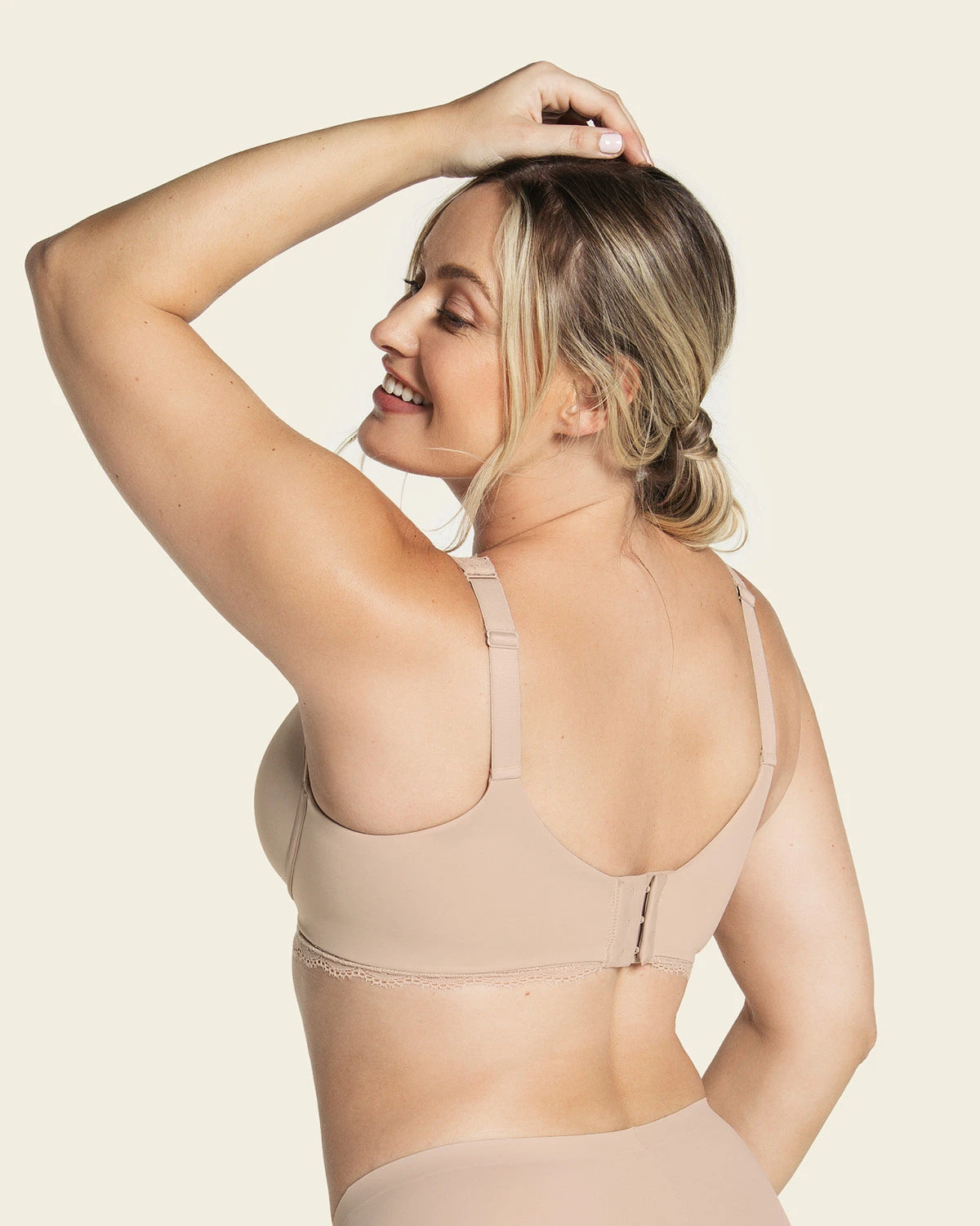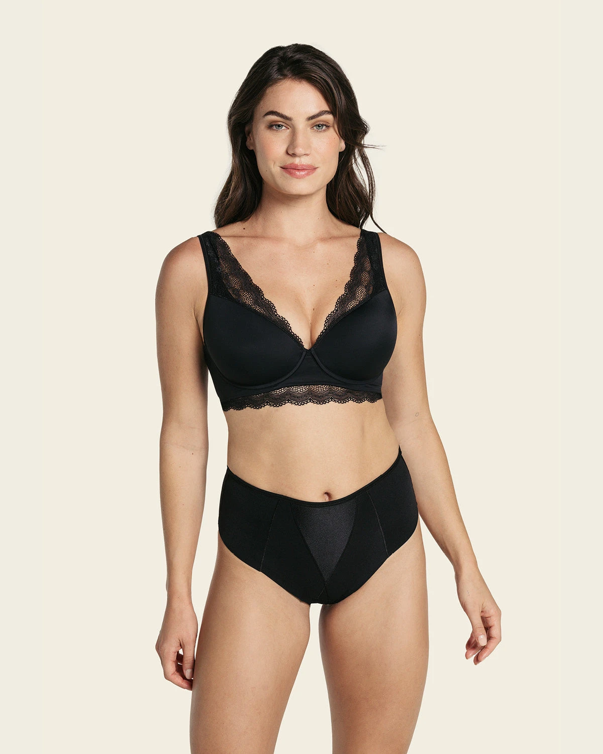 This beautiful bra gives you coverage and support. It features full-coverage triangle cups with a plunge-style front, plus high coverage under arms and along back for a smoothing effect. Underwire adds excellent support and comfort. Lightly-lined cups are designed for a perfect fit. Wide, foam padded straps are comfy on the shoulders – you’ll forget you’re even wearing it! Our signature SmartLace lines the underbust band, cups, and straps for a luxurious look and feel.