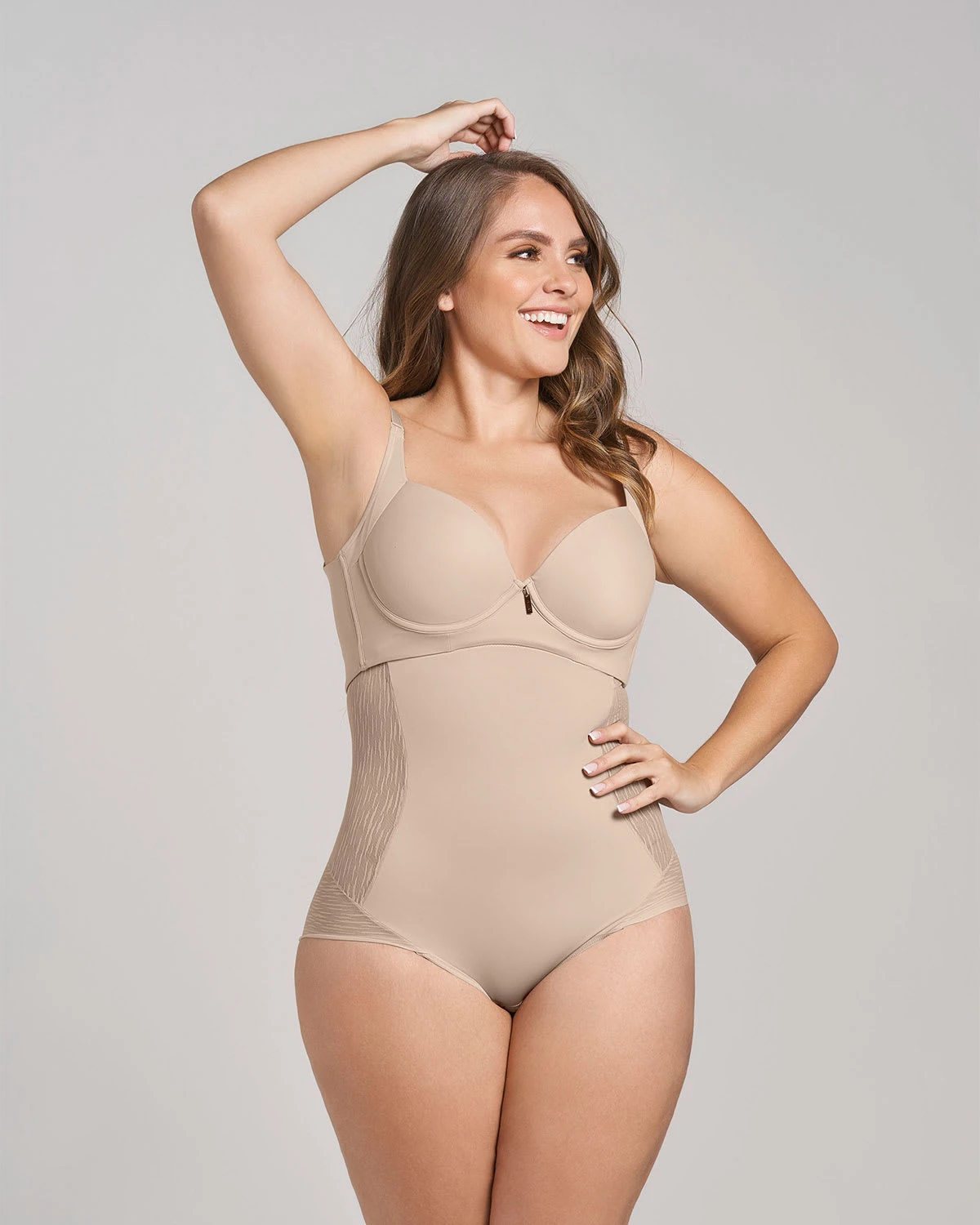 Feel sexy and confident like never before with this shapewear knicker! It features our signature DuraFit® compression soft on the skin fabric that will shape your tummy and waist. The sheer sides in ultra-fine zebra pattern add sensuality to the knicker. It has an anti-slip grip lining for strapless support. You can attach your favourite bra to the eyelets in its back for extra support. Feature open gusset for convenient use. Forget about knicker lines as it is seamless and has no leg bands! It is undetectable under clothes and will not dig into your skin. The ruched seam at the glutes will shape and slightly lift them.