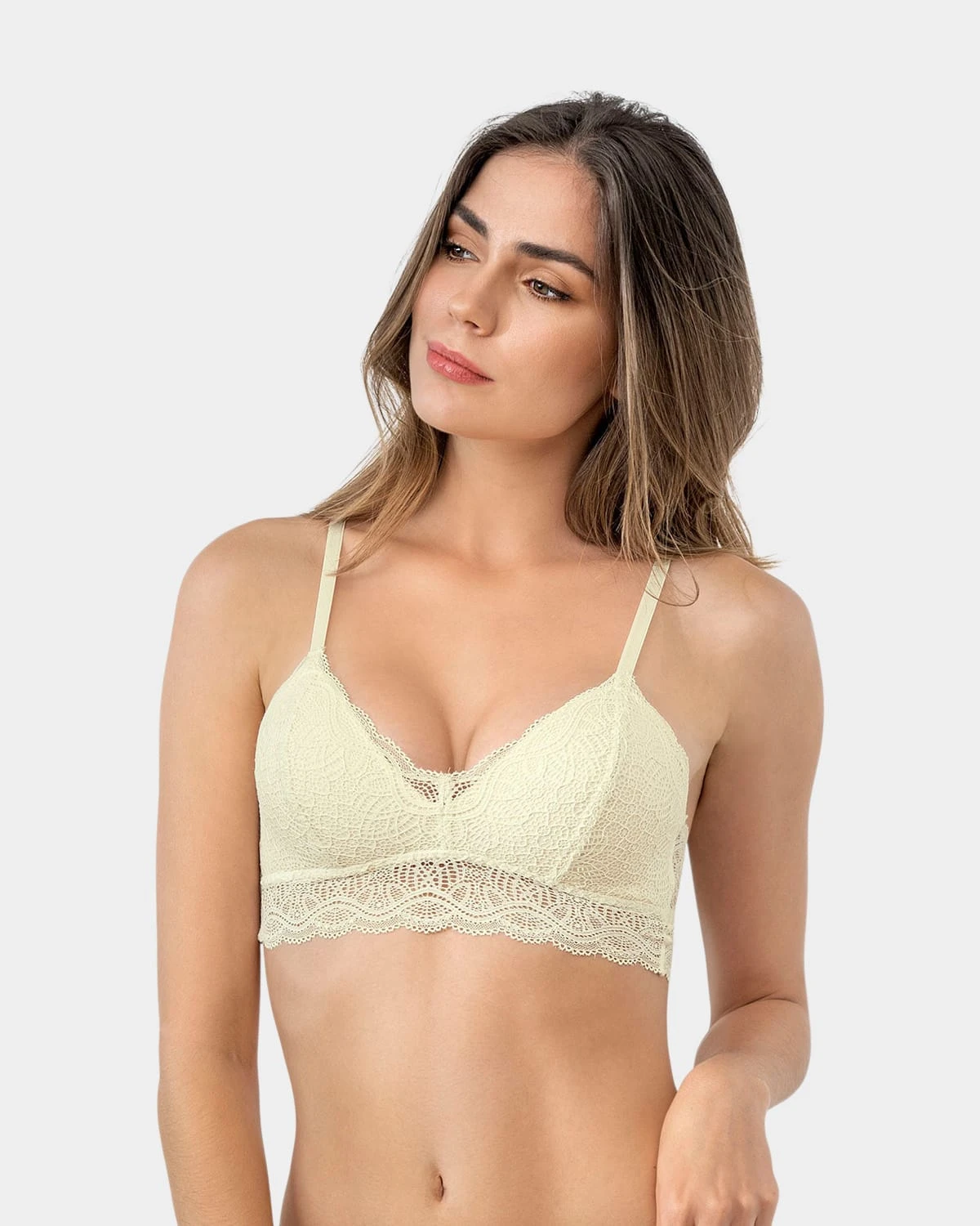 This triangle bra has a totally feminine edge. It’s made with our signature SmartLace. The cups are made with soft, thin foam lining, airy for a comfortable and fresh feel. The back has no hooks for total comfort – instead, it’s elasticated for a perfect fit.