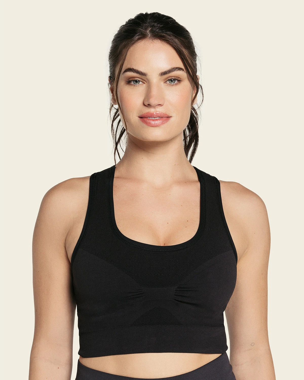 - A sports bra made of our seamless SkinFuse technology for a perfect, comfortable fit.
